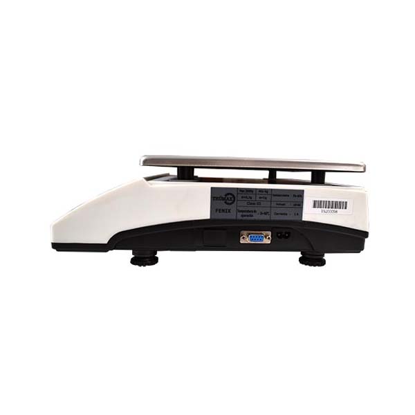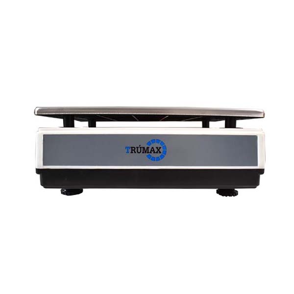 Balanza de mesa Trumax Fénix fabricada en ABS de alta resistencia, display LCD con luz de respaldo tipo LED, plato en acero inoxidable de 27x21cm, batería recargable con adaptador. Funciones como cambio de unidades entre gramos y libras, peso porcentual, conteo de piezas por muestra, límites de peso. Capacidades máximas disponibles: 3kg, 6kg, 15kg y 30 kg.