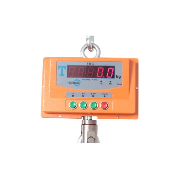 Báscula tipo gancho SHG – Trumax. La báscula tipo gancho o dinamómetro marca Trumax cuenta con numerosas funciones que facilitan las labores del pesaje requerido en el sector industrial como acumulación de pesadas, congelamiento de peso, auto apagado etc. Su fácil manejo y precisión en la pesada son características importantes que permiten que estas basculas trabajen en ambientes comerciales y/o industriales manejando las funciones mencionadas a través del control remoto o directamente en el gancho.