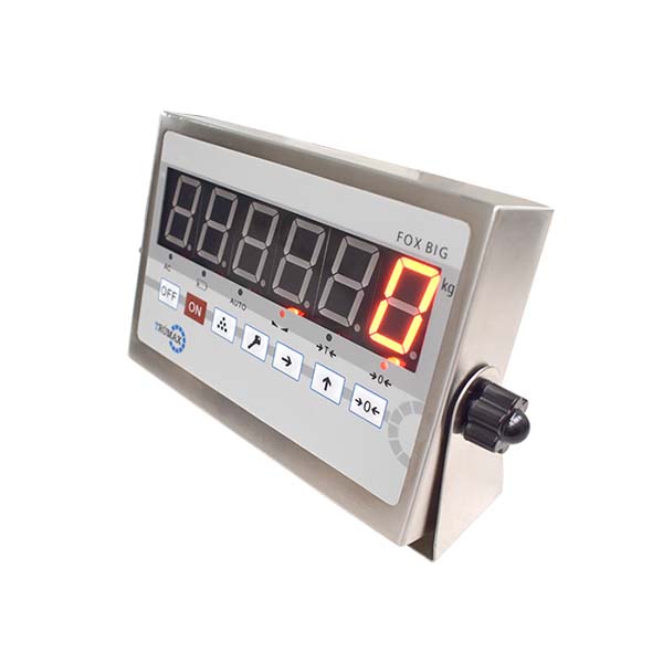 Indicador de peso en acero inóxidable Fox Big – Trumax. Indicador multifuncional solo peso en acero inoxidable, , clase III, con display tipo LED rojo de 4cm de altura para mayor visibilidad y puerto serial RS232, funciones de pesaje de animales, con Peak Hold, Acumulacion de pesadas, conteo por muestra, fácil instalacion y configuracion por teclado, con soporte a pared. Puede ser conectado hasta a 4 celdas de carga de 350 ohm.