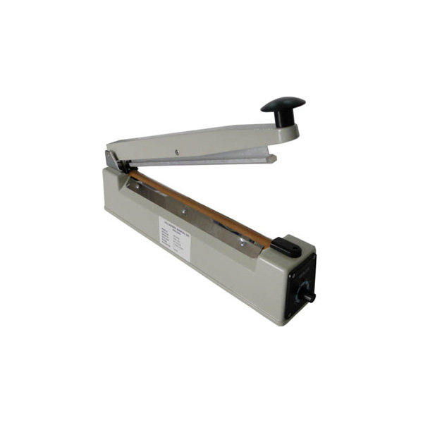 Selladora manual de bolsas – Kramer. Selladora manual de bolsas, el sellado por impulso le permite al operador lograr fácilmente un sellado confiable, uniforme y de gran calidad, incorpora un sistema de ajuste para distintos espesores de materiales, cuenta con tela de teflón permitiendo que el material no se adhiera al equipo. Fabricada en aluminio. Sellado de 2mm de espesor. Alimentacion monofásica de 110VAC.